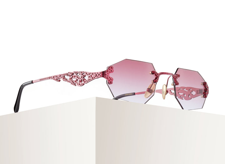 The majesty of the sea is brought to shore through the striking details of the Coral sunglasses. Bold hexagonal lenses are complemented by bejeweled coral frames in this wearable work of art. Inspired by the ocean’s precious and extraordinary life force, the Coral sunglasses are a luxurious symbol of serene strength.