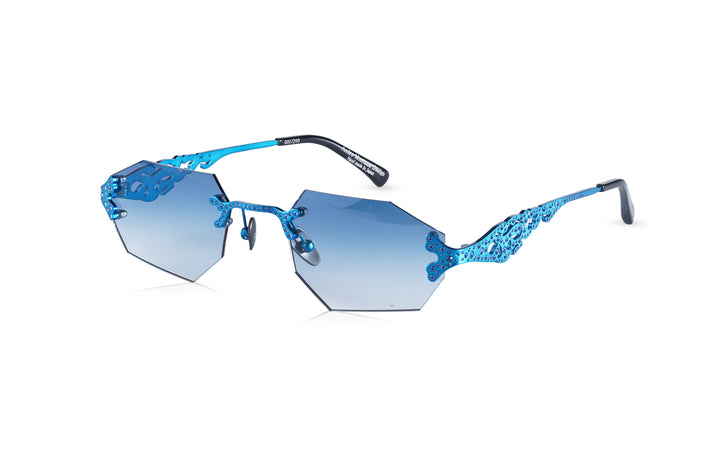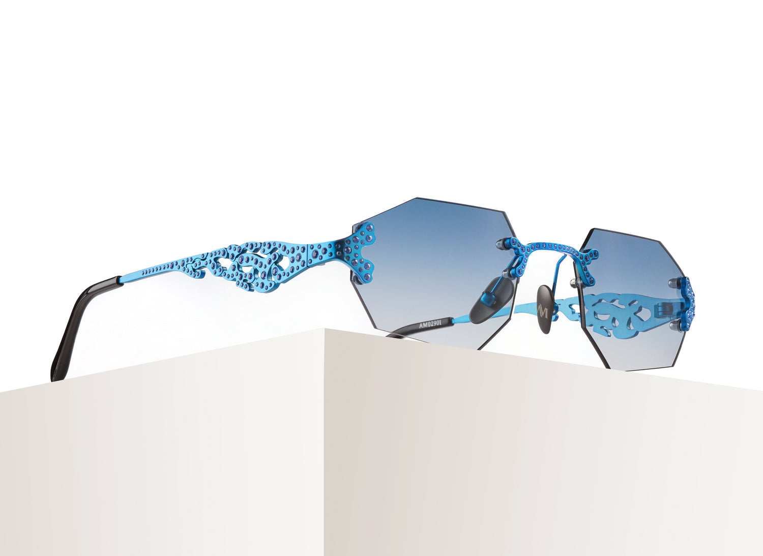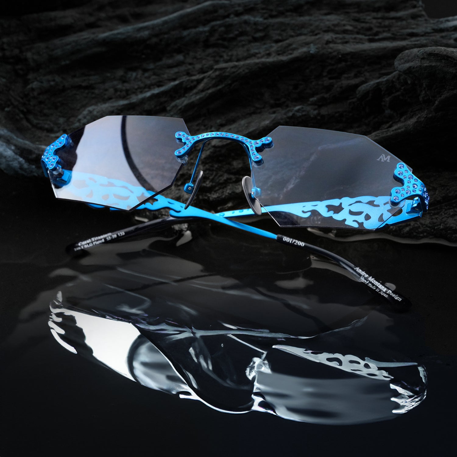 Inspired by Australia’s Great Barrier Reef, the exquisite Coral sunglasses replicate the intricate beauty of its namesake. This eye-catching design captures the best of oceanic magnificence with striking hexagonal lenses and lavish frosted gold frames, embellished with over 250 handset Swarovski crystals. It blurs the lines between sculpture and eyewear, allowing you to revel in the marvels of nature with each wear.
